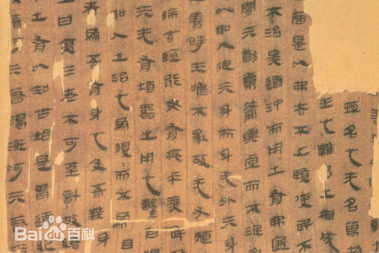 字体有篆、隶之分。篆书的抄写于汉高祖十一年 (前196)左右,隶书的约抄写于汉文帝初年。长沙马王堆三号墓出土的帛书共有28种,计十二万余字,均破损严重。依《汉书·艺文志》分类 ,六艺类的有《周易》、《丧服图》、《春秋事语》和《战国纵横家书》;诸子类的有《老子》甲本(后附佚书4种)、《九主图》、《黄帝书》和《老子》乙本(前附佚书4种);兵书类有《刑德》甲、乙、丙3种;数术类有《 篆书阴阳五行》、《隶书阴阳五行》、《五星占》、《天文气象杂占》、《彗星图》、《出行占》、《木人占》、《符箓》、《神图》、《筑城图》、《园寝图》和《相马经》,其中《五星占》是中国现存最早的天文书;方术类有《五十二病方》 (附佚书4篇)、《胎产图》、《养生图》、《杂疗方》、《导引图》(附佚书2篇),其中 《五十二病方》是中国已发现的最古老医书。另外,还有《长沙国南部地形图》、《驻军图》、《城邑图》3幅地图。