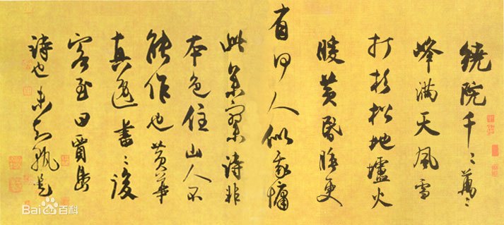 王庭筠书法宗米芾,行笔疾速,富于变化。但不尽是米芾的风格,有他其自身的特点,书写作风十分严谨。用笔中锋、侧锋并使,点线丰腴厚实,绝少枯笔飞白;笔致俊逸,神气超迈。章法方面,这幅字首尾布白相应,行距匀称妥贴,对行与行的处理,注意揖让呼应,达到相安相得。
